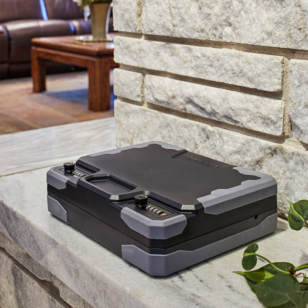 Rugged Construction: Built from specialized impact-resistant polycarbonate with a durable rubber over-mold. This design absorbs shock and provides added protection if the safe is dropped.