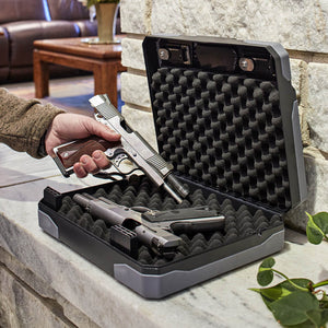 XXL Capacity: Don't let the lightweight design fool you—this safe is massive on the inside. It fits up to two full-sized 1911 handguns, or can be used to secure 8.5" x 11" documents, jewelry, and ammo.