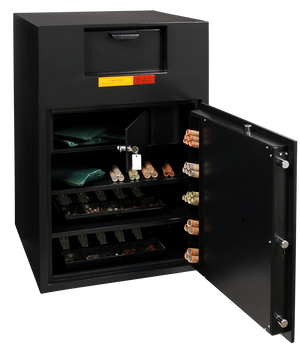IMPORTANT: AMSEC Depository safes are recommended for any operation that requires a non-returnable deposit such as armored car companies, convenience stores, restaurants, etc. The top locker is not meant for overnight storage of cash or valuables.