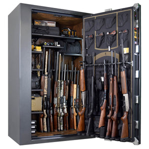 With a spacious 48 cubic foot interior and rugged exterior dimensions of 72” H x 44” W x 26” D, the M49T weighs in at a substantial 1,315 lbs, making it a powerful deterrent against forced entry and fire damage. Capable of housing up to 49 long guns, this safe also includes room for documents, valuables, and other high-priority assets.