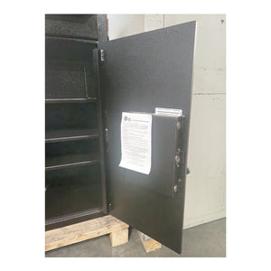 On the front of the 1/2" solid steel door lies the UL approved NL UR-2020 high security electronic lock and brushed nickel handle. This lock is the most reliable lock in the safe industry, assembled and tested in the USA. The lock is also protected by a 1/4" thick Rockwell hard plate and an internal re-locker that will keep the bolts locked if a thief were to attempt a punch or drill attack.