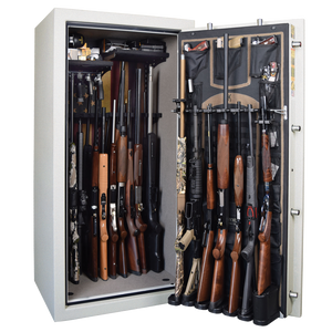 Offering 80 minutes of fire protection at 1550°F and 95 minutes at 1200°F, the HTR33’s ThermaBlock design ensures superior thermal defense. It accommodates up to 33 long guns, including quick-access storage on the DPX door system. Inside, CMS adjustable shelving allows flexible configurations for firearms and valuables alike.