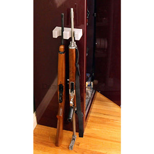 It attaches to the side of your safe magnetically, and lets you rest your rifles securely in place. It even has a band that will swing around and enclose the barrels of your guns so they are held securely.
