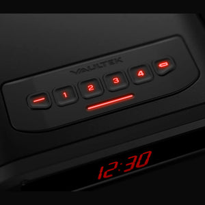 Transform your nightstand with the Vaultek Smart Station DS2e. This isn't just a safe; it is a multi-functional bedside station designed to blend seamlessly into your home environment. It offers secure, rapid-access storage for a full-size handgun (up to 9"), jewelry, and other valuables, all while functioning as a modern clock and charging station.