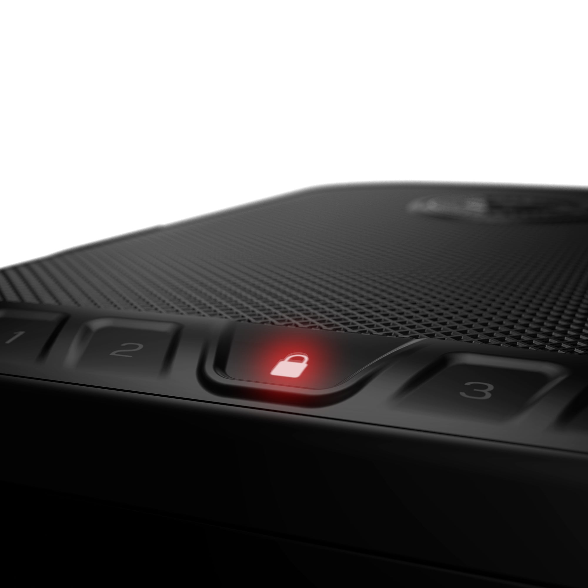 In addition to being an all weather case, the Vaultek LifePod has a built-in electronic locking system featuring a single anti-impact latch and touch activated keypad. The electronic lock operates off of a 9 volt battery and features a micro-USB port in the event the battery dies. The safe also has a key override that can be disabled from the inside to prevent the lock from being picked open.