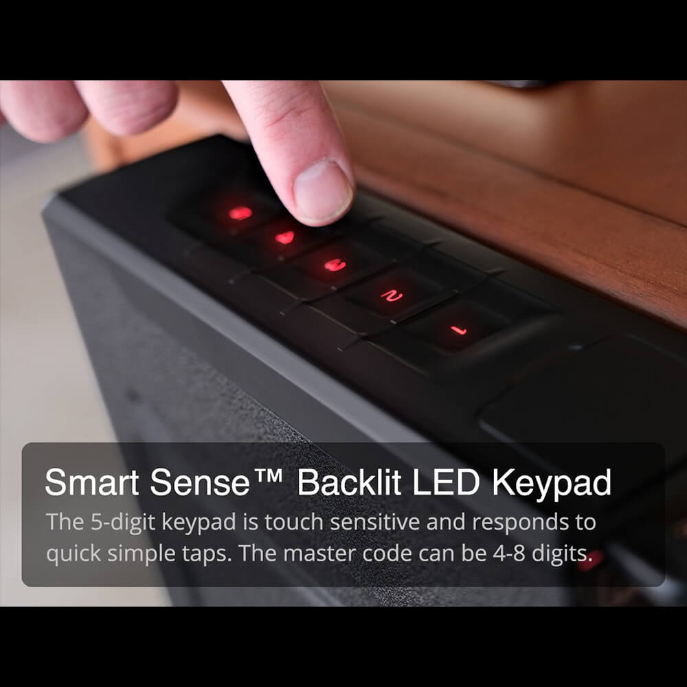 Rapid Deployment: Access your firearm instantly using the backlit, 5-digit Smart Sense™ keypad. The safe opens via a ball-bearing twin rail system that guides the drawer out quickly and quietly.
