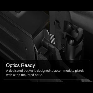 Optics Ready Design: The interior high-density foam holster is designed to accommodate compact to full-size handguns (up to 8.875" in length) equipped with mounted optics. It also features a dedicated slot for one spare magazine.