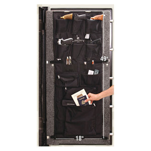 When it comes to Door Panel Organizers getting the right fit and style for your Gun Safe is crucial. The Liberty Door Panel Organizer Pistol Kit 20-23-25 comes equipped with 6 pistol holsters, Zip Pockets, Choke Tube Holders, and Cool Pocket. The Cool Pocket is designed to give you extra fire protection up to an additional 50 degrees!